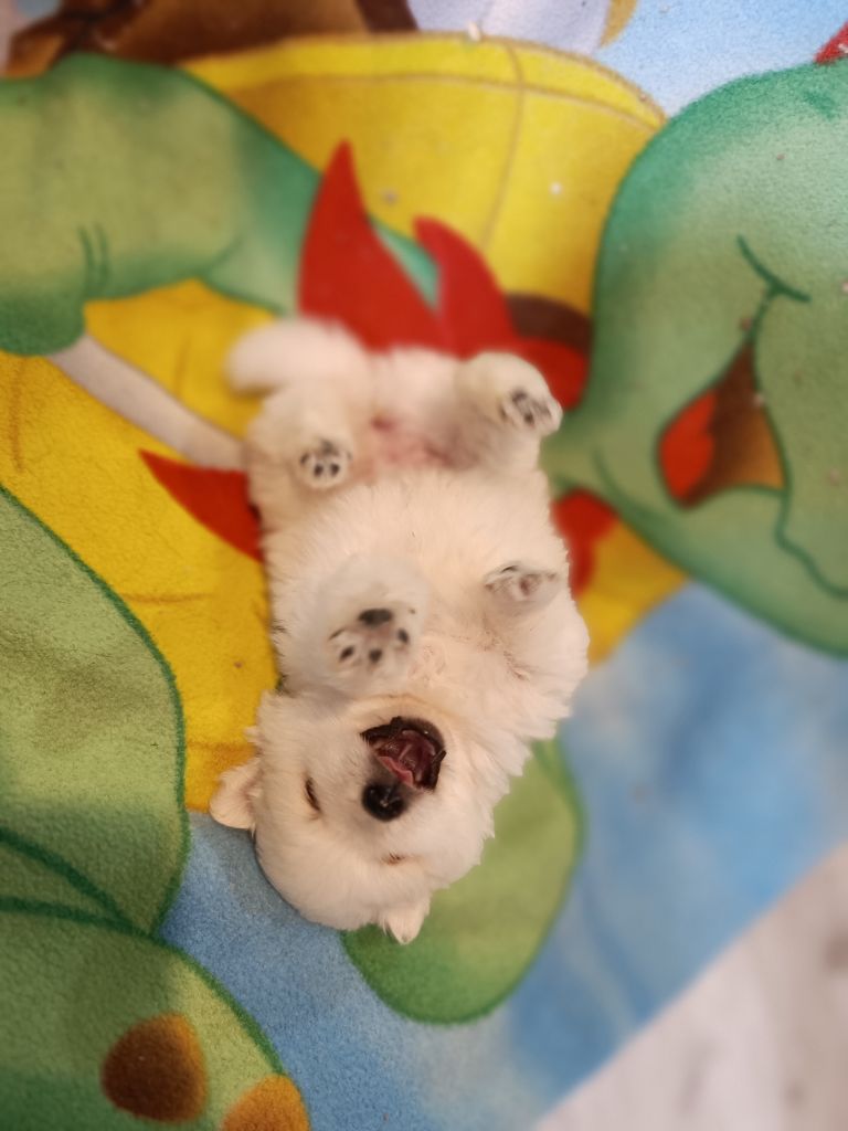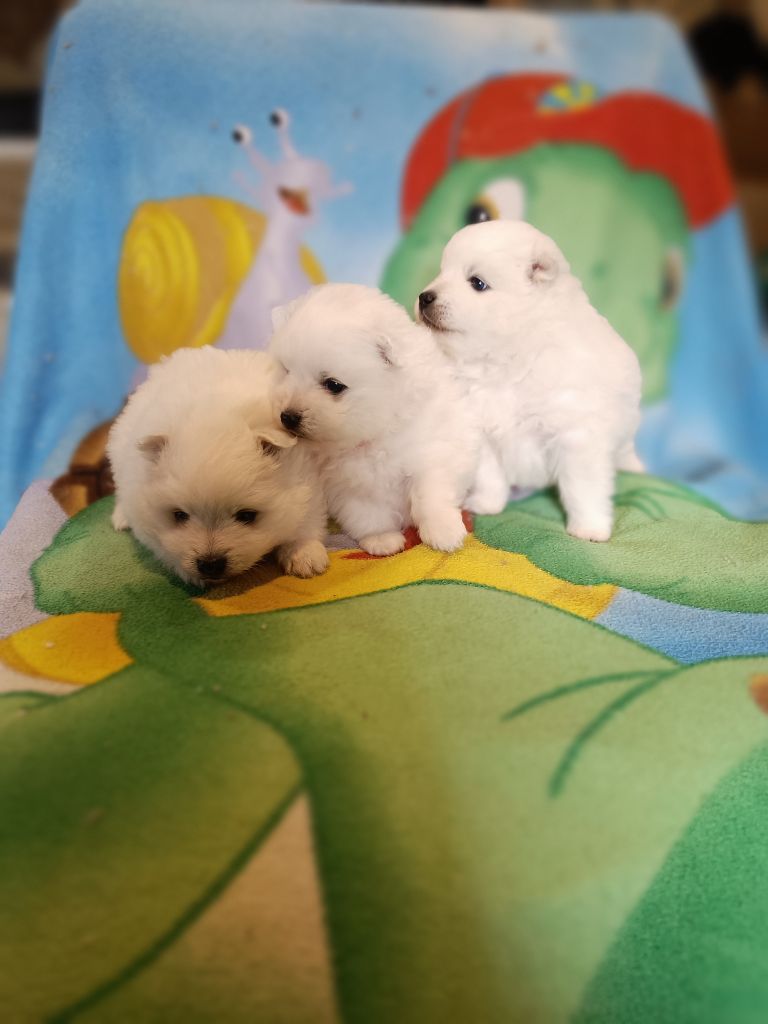 portée de 2 femelles et 1 mâle spitz japonais .
